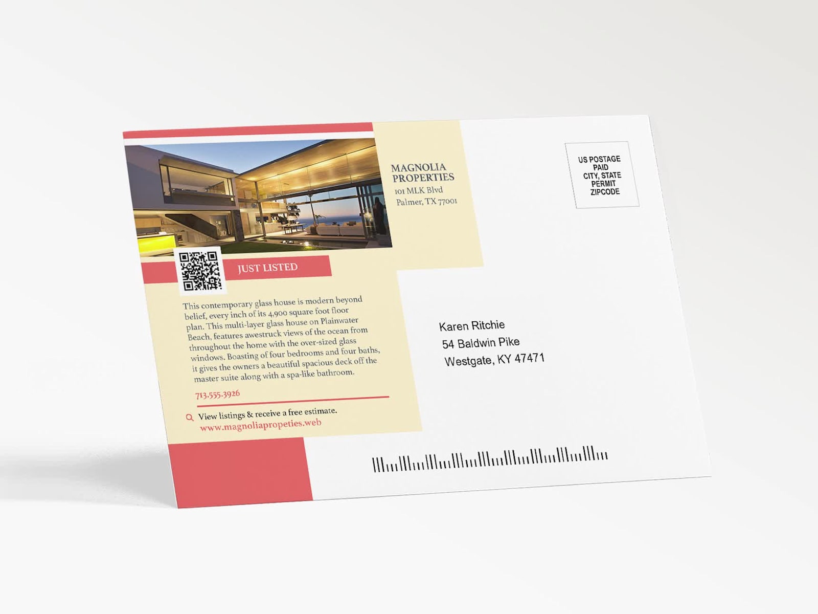 Price includes your postcard, a mailing service list fee and USPS Postage. Final price is based on the exact number of recipients confirmed at checkout.
